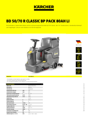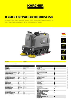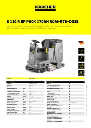 Die Aufsitz-Scheuersaugmaschine B 110 R überzeugt mit 160-Ah-Lithium-Eisenphosphat-Batterie, integriertem Ladegerät, zeitsparendem Seitenschrubbdeck und Reinigungsmittel-Dosiersystem DOSE.