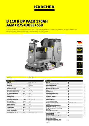 Zuverlässige Aufsitz-Scheuersaugmaschine B 110 R mit 160-Ah-Lithium-Eisenphosphat-Batterie, integriertem Ladegerät, Seitenschrubbdeck und Reinigungsmittel-Dosiersystem DOSE.