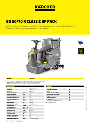 Zuverlässige Aufsitz-Scheuersaugmaschine B 110 R mit 170-Ah-Batterie, integriertem Ladegerät, Seitenschrubbdeck und Reinigungsmittel-Dosiersystem DOSE. Flächenleistung: 5100 m2/Stunde.