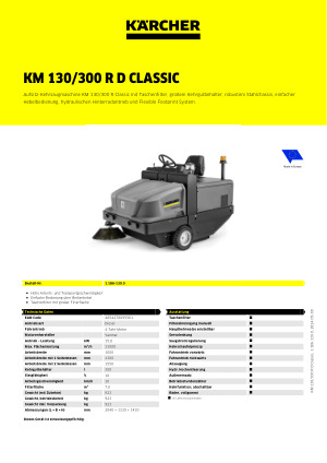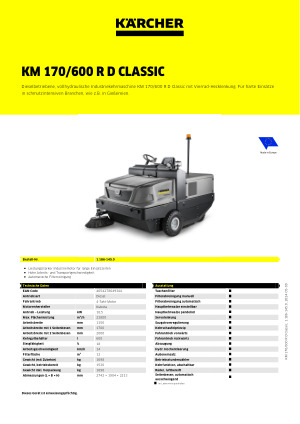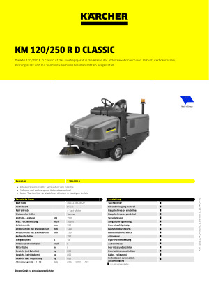 Die KM 120/250 R D Classic ist das Einstiegs­gerät in die Klasse der Industrie­kehr­maschinen. Robust, verbrauchsarm, leistungsstark und mit vollhydrau­lischem Diesel­fahrantrieb ausgestattet.