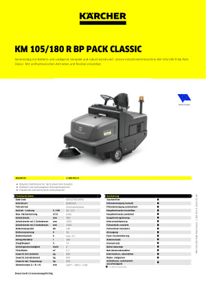 Serienmäßig mit Batterie und Ladegerät, kompakt und robust konstruiert: unsere Industriekehr­maschine KM 105/180 R Bp Pack Classic. Mit voll­hydraulischen Antrieben und flexibel einsetzbar.