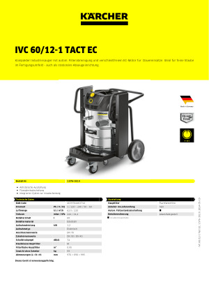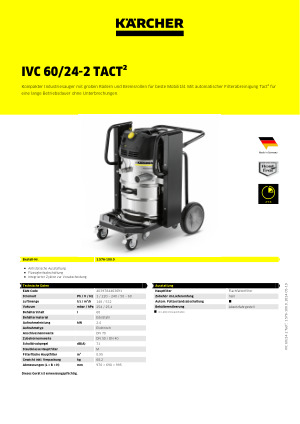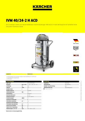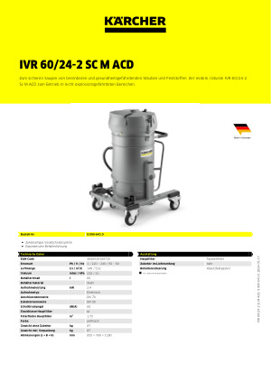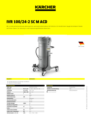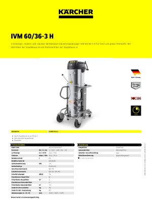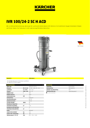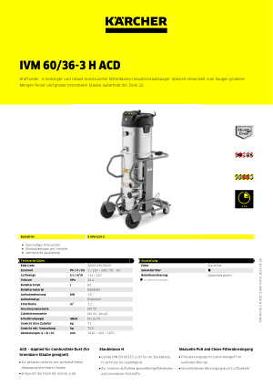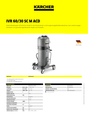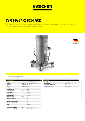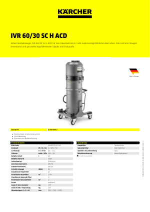 Industriestaubsauger IVR 60/30 Sc H ACD für den Dauerbetrieb in nicht explosionsgefährdeten Bereichen. Zum sicheren Saugen brennbarer und gesundheitsgefährdender Stäube und Feststoffe.