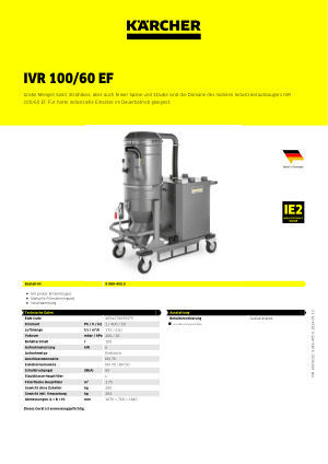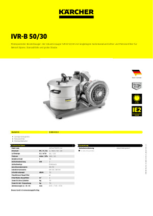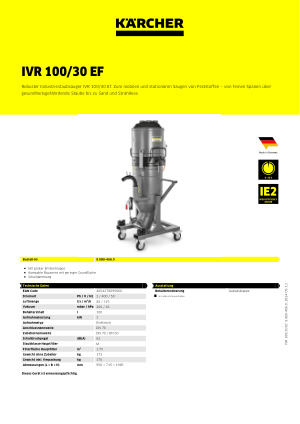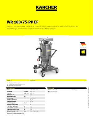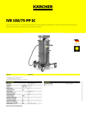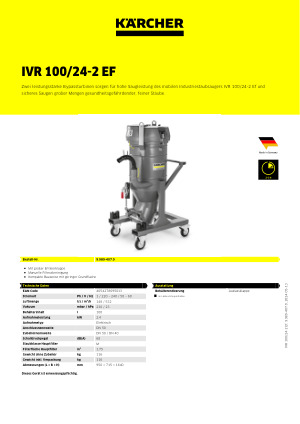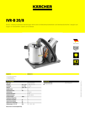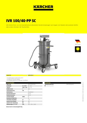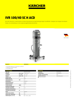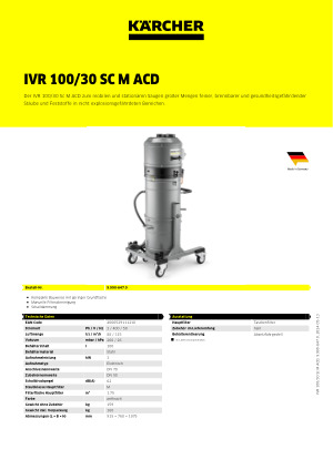 Der IVR 100/30 Sc H ACD zum mobilen und stationären Saugen großer Mengen feiner, brennbarer und gesundheitsgefährdender Stäube und Feststoffe in nicht explosionsgefährdeten Bereichen.