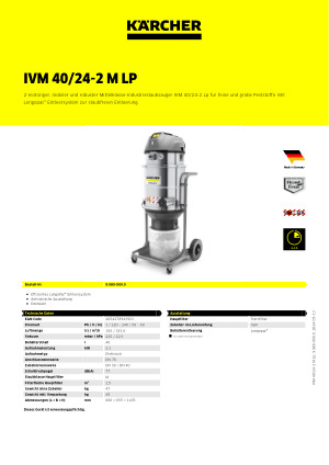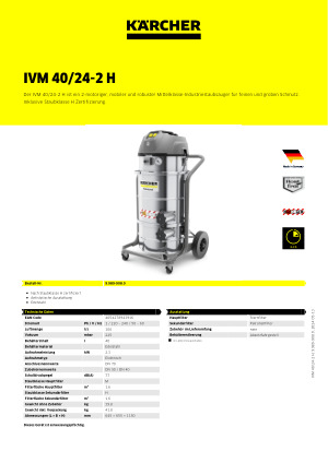 Der IVM 40/24-2 H ist ein 2-motoriger, mobiler und robuster Mittelklasse-Industriestaubsauger für feinen und groben Schmutz. Inklusive Staubklasse H Zertifizierung.