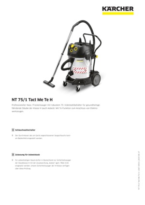 Professioneller Nass-/­Trockensauger mit ro­bustem 75 l-Edelstahl­behälter für ge­sundheits­gefährdende Stäube der Klasse H (auch Asbest). Mit Te-Funktion zum An­schluss von Elektro­werk­zeugen.