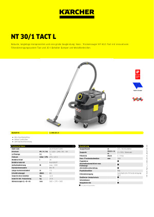 Hohe Mobilität und Leistung, Ausdauer, Robustheit und eine Vielzahl praktischer Ausstattungsmerkmale machen die Kärcher Tact²-Sauger zu gefragten Spezialisten und Allroundern. Die Modelle mit Kippfahrgestell bieten vor allem für industrielle Anwendungen Vorteile bei der Entsorgung von Flüssigkeiten und grobem Schmutz.