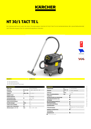 Der Handwerkerfavorit unter den Nass-/Trockensaugern: Kärcher NT 30/1 Tact Te mit Gerätesteckdose (Ein-/Ausschaltautomatik) und Filterabreinigung Tact für unterbrechungsfreies Arbeiten.