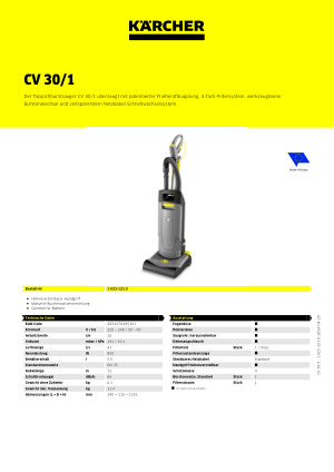 Der Teppichbürstsauger CV 30/1 überzeugt mit patentierter Fliehkraft­kupplung, 3-fach-Filter­system, werkzeuglosem Bürstenwechsel und zeitsparendem Netzkabel-Schnellwechselsystem.
