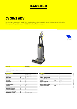 Erfüllt höchste Ansprüche an Flächen­leistung, Reinigungsergebnis und Ergo­nomie: der einfach und komfortabel zu be­dienende Teppichbürst­sauger CV 38/2 mit optischer Bürsten­einstell­hilfe.