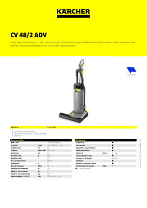 Unser Teppichbürstsauger CV 48/2 Adv überzeugt mit einem hervorragenden Preis-Leistungs-Ver­hältnis, hohem ergo­nomi­schen Komfort, einfacher Bedienbarkeit und einer hohen Flächenleistung.