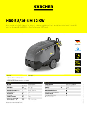 Der elektrisch beheizte Heißwasser-Hochdruckreiniger HDS E 8/16-4 M überzeugt mit 24 kW Heizleistung und hoher Energieeffizienz überall dort, wo Abgase nicht erwünscht oder verboten sind.