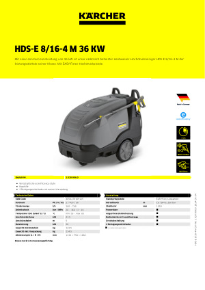 Mit einer enormen Heizleistung von 36 kW ist unser elektrisch beheizter Heißwasser-Hochdruckreiniger HDS E 8/16-4 M der leistungsstärkste seiner Klasse. Mit EASY!Force-Hochdruckpistole.